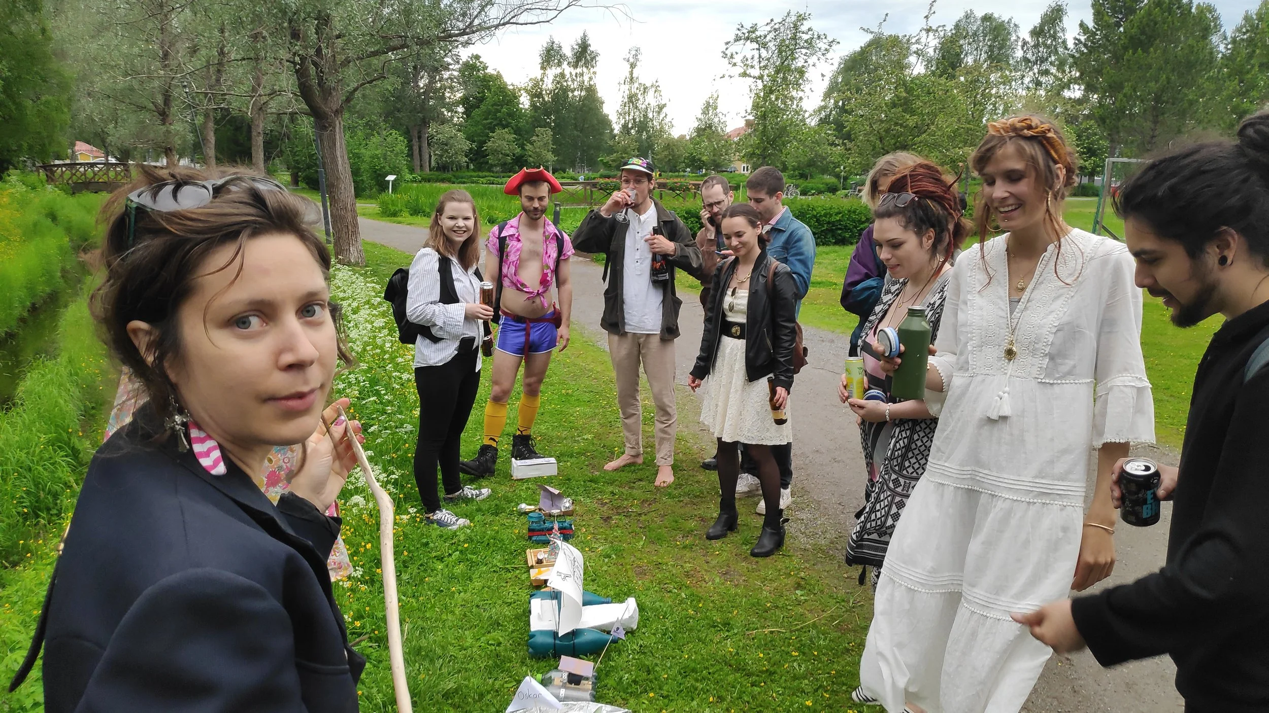 Varje år på våren anordnar vi ett barkbåtsrace i Hagaparken. Tävlingen går ut på att komma fram snabbast, ha snyggast båt och torrast snus.