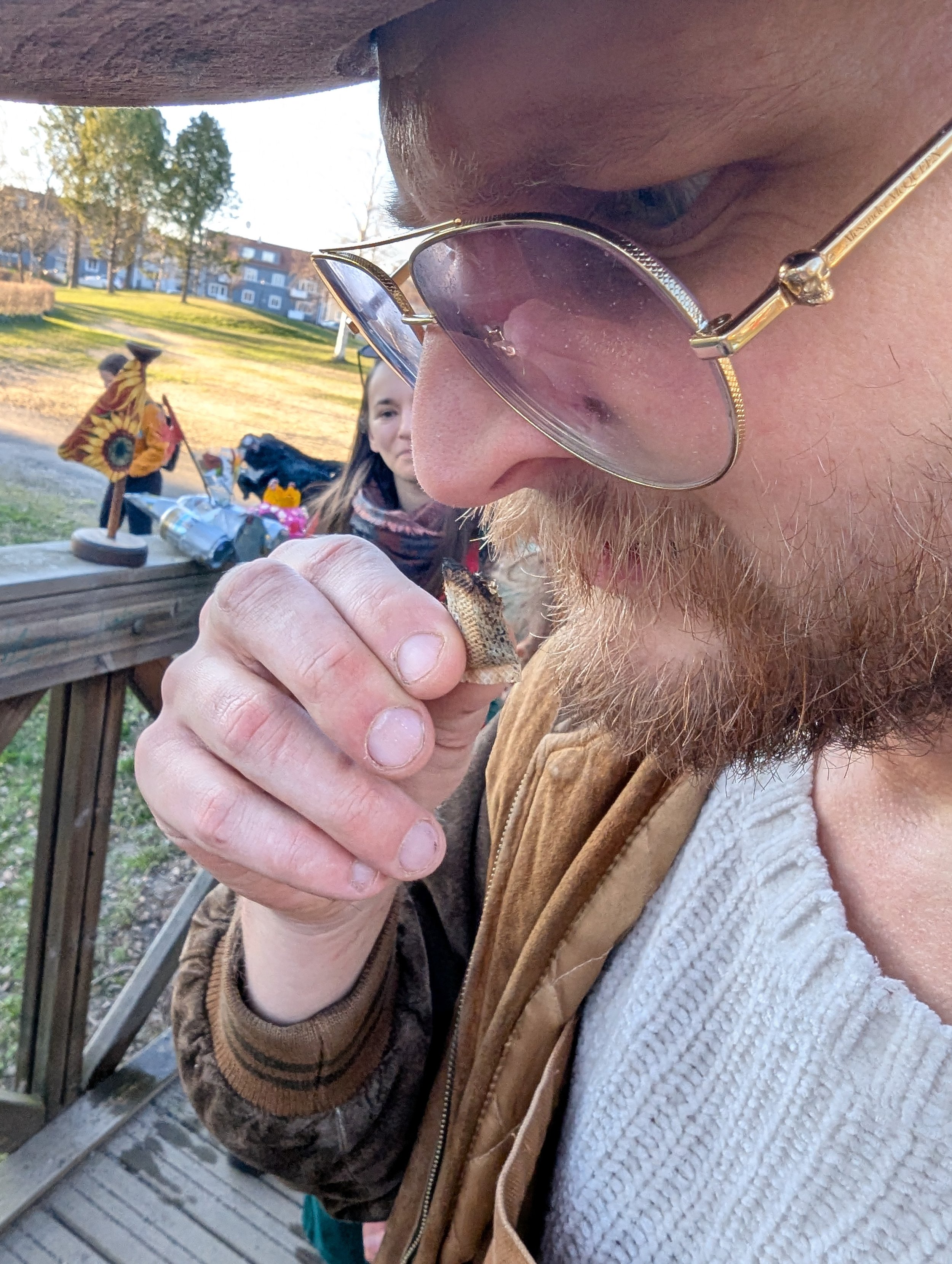 Gustav provsnusar alltid snusen. Den här snusen fick en törn i form av eld på sig. Men det stoppade inte honom för det.