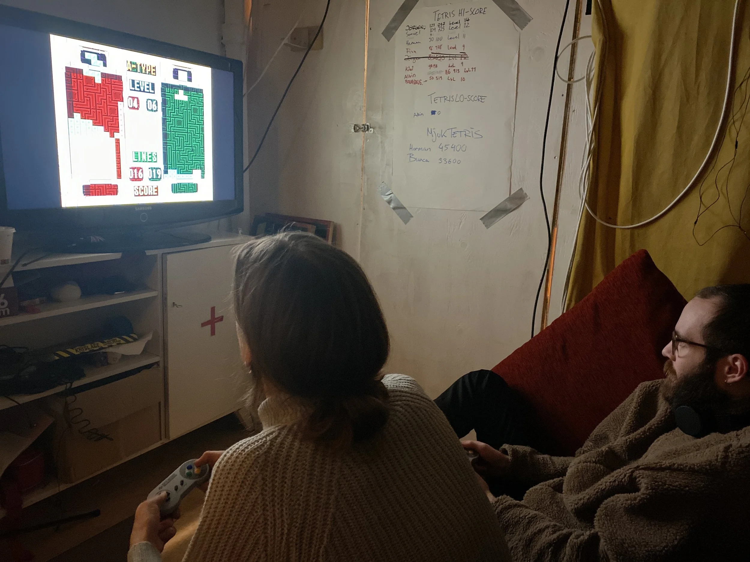 I allrummet har vi en SNES konsoll där vi spelar retrospel. En särskild favorit är Tetris & Dr. Mario, som tillåter oss att spela Tetris mot varandra. Rader man lyckas undanröja skickas över till sin motståndares sida. Det gör det väldigt actionladdat och därför har vi varje år en tetristurnering där den allra bästa tetrisspelaren utses.