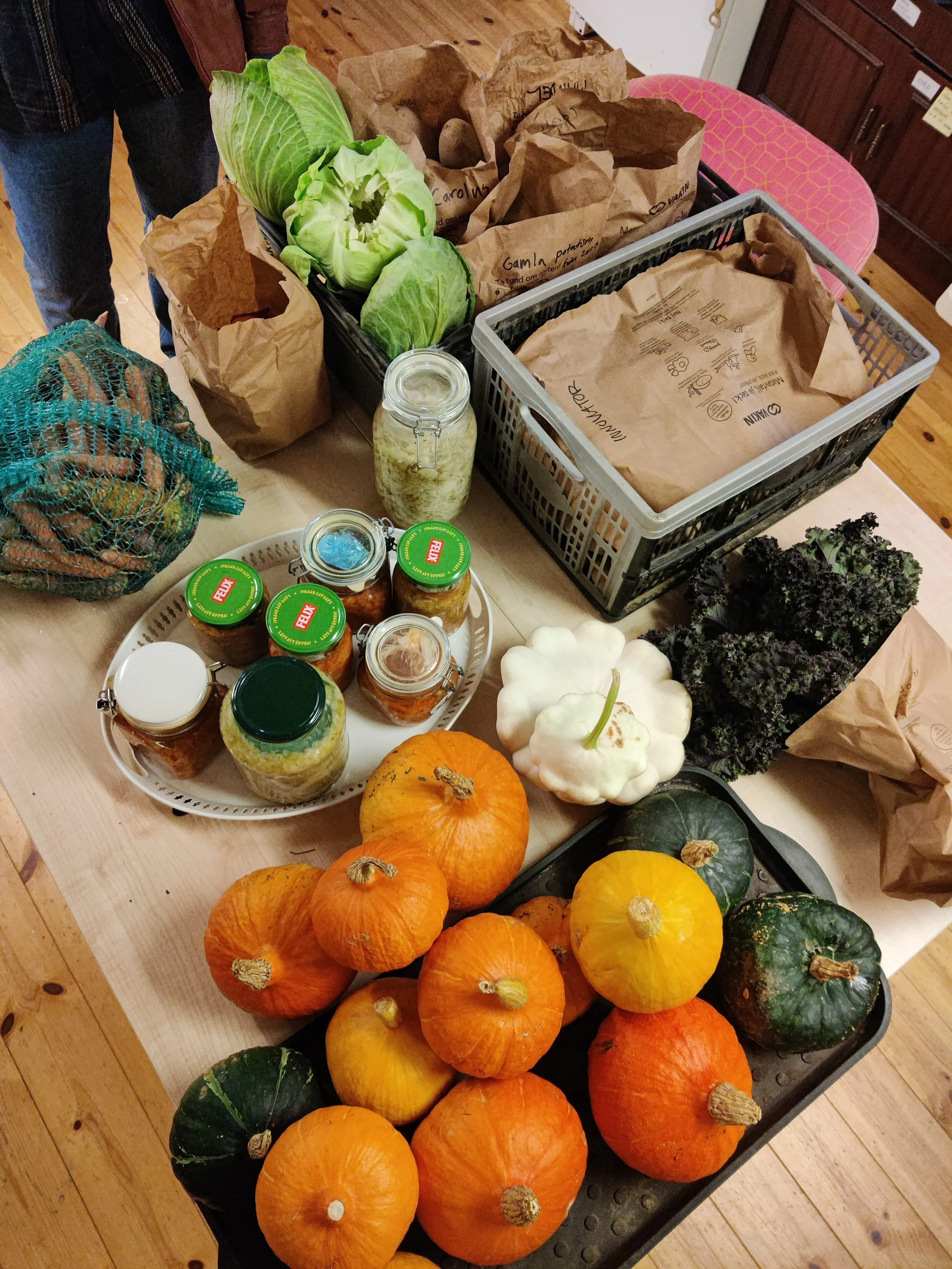 Resten tas hem av medlemmar och blir till vardagsmat. Det är mycket potatis och kål; som man kan gissa sig fram till.